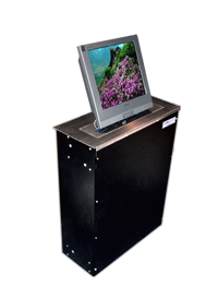 本公司生產(chǎn)的液晶屏升降器主要應(yīng)用于大型會議室,高級多媒體網(wǎng)絡(luò)系統(tǒng),當需要舉行會議時隱藏在會議桌內(nèi)的升降機把顯示屏從會議桌下面自動升到桌面并仰成一成角度,符合人機工程學(xué)原理,產(chǎn)品也可以左右調(diào)節(jié)角度,更有利于辦公演示的需要,當不使用時顯示屏可自動下降隱藏于會議桌內(nèi)部,并自動關(guān)門,產(chǎn)品具有防盜、防塵保持桌面平整,美化桌面等功能。最新研制生產(chǎn)的同步帶傳輸液晶顯示屏升降器,克服了鏈條、和齒條升降器的噪音大、油污多、傳動不穩(wěn)定等缺點,是目前國內(nèi)最新液晶屏升降器的傳動方式。